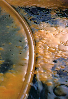 El aceite se adhiere al exterior del tubo, que es continuamente conducido a través del desnatador y por los limpiadores del tubo que retiran el aceite el cual es llevado a un tanque de recolección.